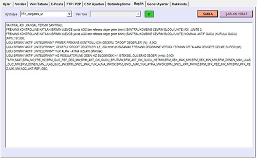 Kullanıcı her uç için Veri türü seçip, seçilen veri setine eklenecek başlık satırlarını oluşturmalıdır. Tasarım tamamlandığında SAKLA tuşuna basarak saklamalıdır. Kullanıcı dilerse ŞABLON tuşuna basarak ilgili veri seti ile ilgili TEİAŞ’ın önerdiğine benzer bir şablonu yükleyebilir ve kendi başlık satırlarını yüklenen şablonu değiştirmek suretiyle hazırlayabilir.